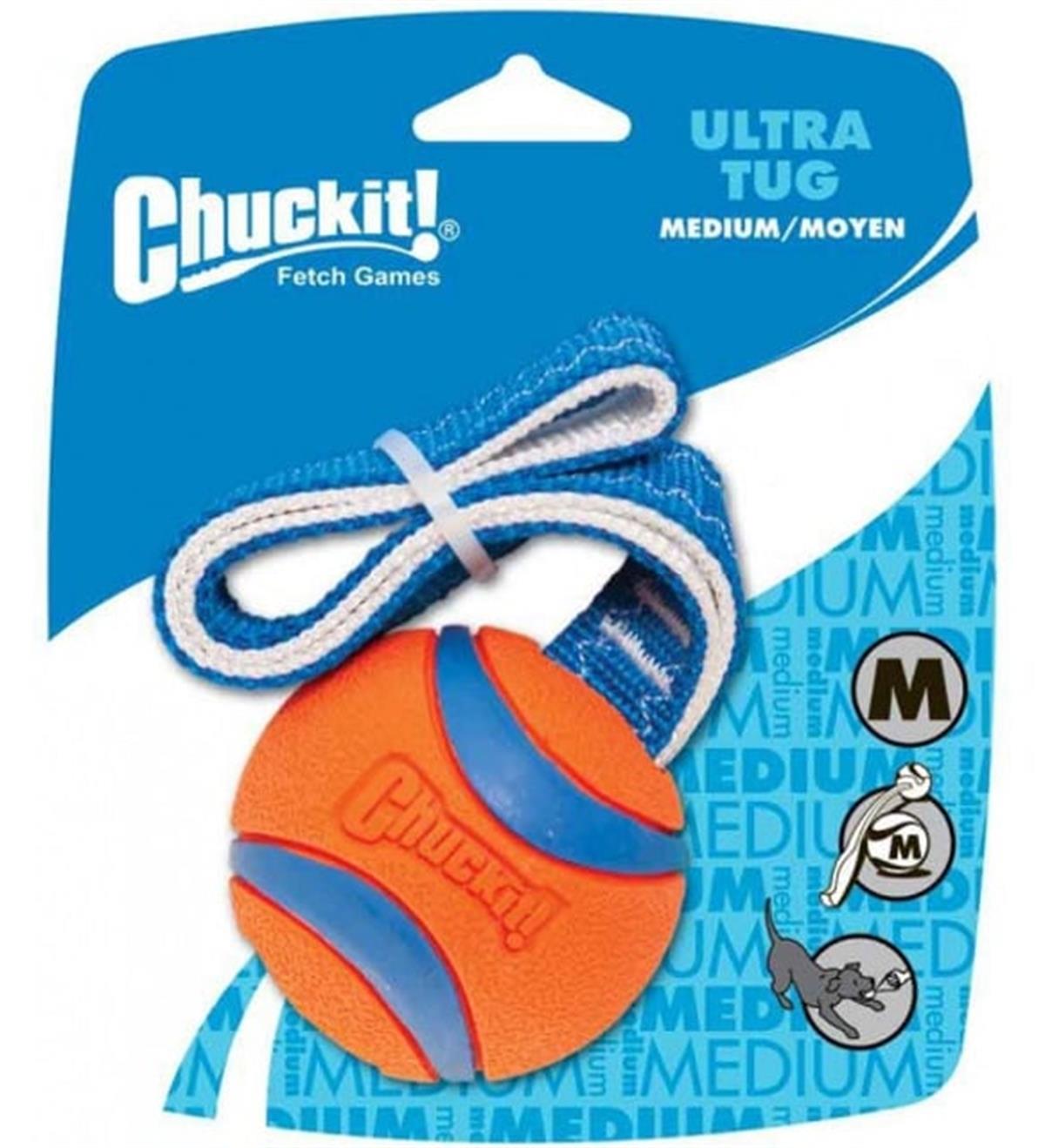 Chuckit! Ultra Duo Tug at getir ve çekiştirme oyunları için yaratılmıştır. Ekstra dayanıklı malzeme kalitesi sayesinde uzun süre köpeğinizin en favori oyun topu olacaktır. Chuckit! top fırlatıcılara uyumlu ve 6.4cm çapı ile orta ırk köpekler için idealdir.